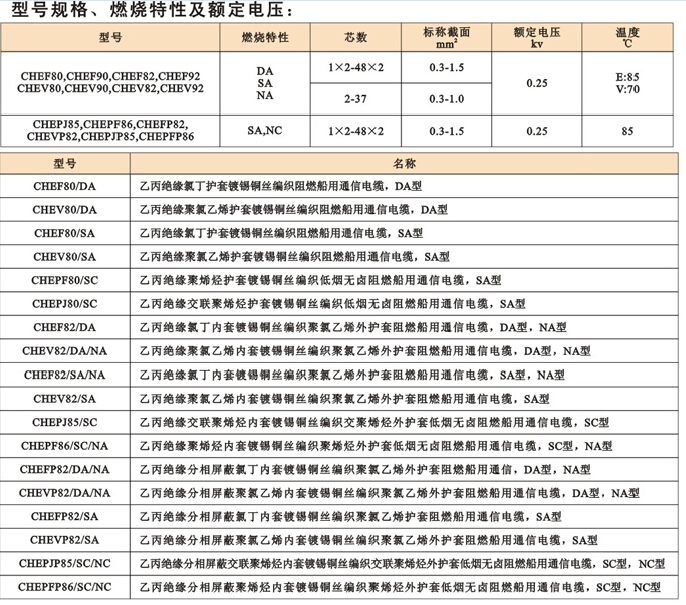 船用控制電纜規(guī)格型號以及額定電壓等:(見下圖)